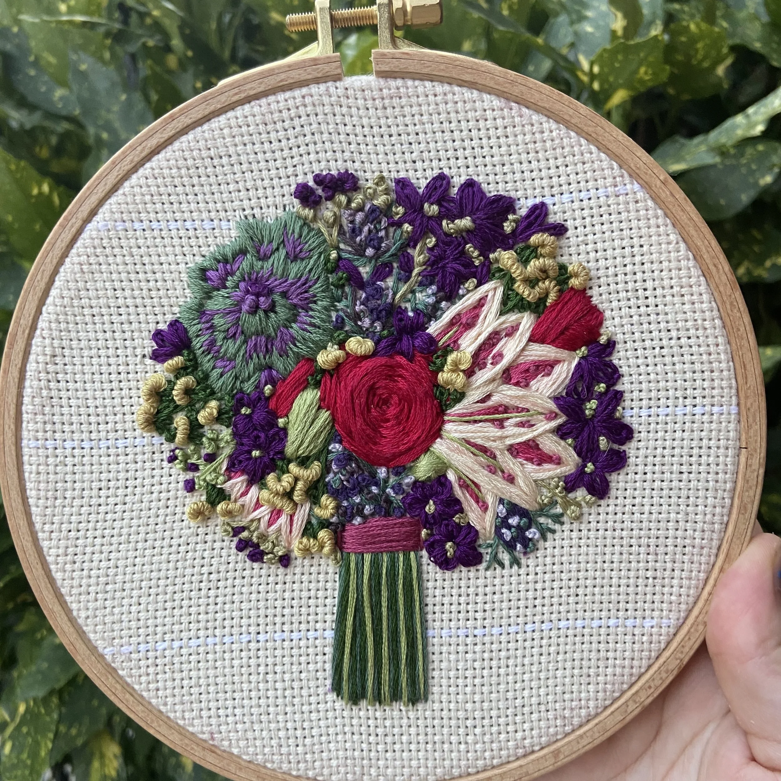 Let me immortalize your bouquet through the art of embroidery! This is a great gift for yourself, your spouse, or a couple in your life that you love!